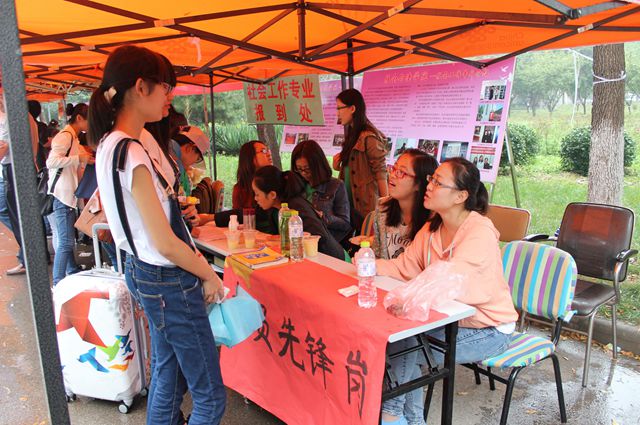 9月13、14日,社会与法学院在迎新场地设立“党员先锋岗”,学生党员积极参与迎新工作,并深入新生宿舍,关心慰问新生,为新生答疑解惑。