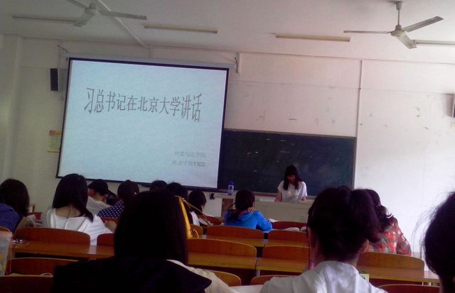 活动中,各团支部首先共同学习了习近平总书记与北大师生座谈时的重要讲话内容,然后召开讨论会,同学们结合自身实际,畅谈认识和体会。大家纷纷表示,要按照习总书记讲话中的四点要求树立和培育社会主义核心价值观,紧密团结在以习近平同志为总书记的党中央周围,充分认识当代大学生的责任感和使命感,自觉践行社会主义核心价值观。