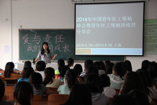 6月5号下午,社会与法学院团总支在1号教学楼302召开了以“爱与责任,我们一起成长”为主题的社工论坛学习成果分享会。