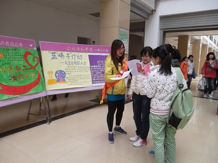 各协会在普教楼和合班楼之间采用海报展览、现场讲解等方式,以不同的主题向全校师生展示了关于社会工作的多方面知识。海报主题主要包括温馨的“蓝蜗牛”关爱自闭症人士宣传、冷静理性的“反对性别暴力”宣传、全面的“社工是什么”说明,以及“艾滋病活动”和“反家暴活动”的宣传,海报还展示了驻济社工机构的特色项目介绍和一线社工人士简介。张张缤纷的海报,个个鲜活的主题,吸引了许多围观的学生。与此同时,活动中讲解员的讲解、宣传单页的发放以及咨询台的相关介绍也使学生们更深入地了解了社会工作。整个活动气氛活跃,现场井然有序,社工理念深入人心。