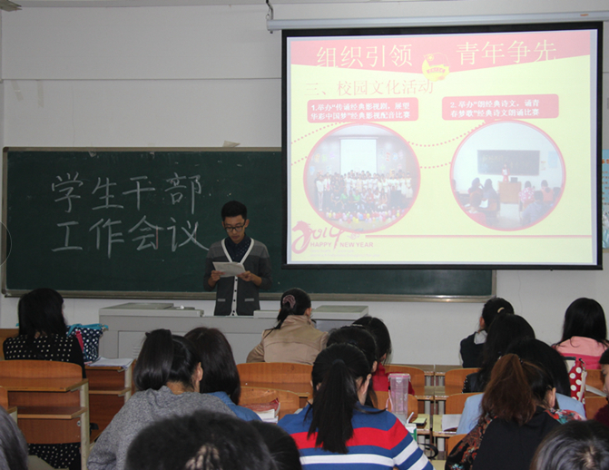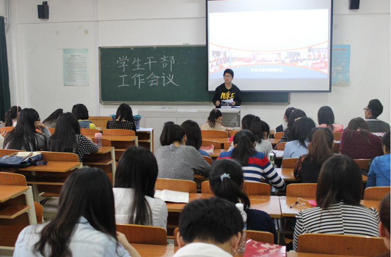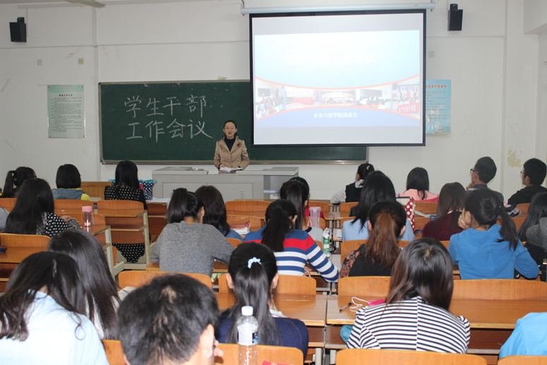 4月17日,社会与法学院在普教楼304教室召开学生干部工作会议,会议由社会与法学院团总支书记赵晓琳主持,团总支学生会全体学生干部参加。