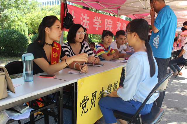 8月27日,社会与法学院在迎新场地设立“党员先锋岗”,组建志愿服务队,学生党员、部分学生干部及学生会成员积极参与迎新工作,确保了迎新工作高效有序的进行。