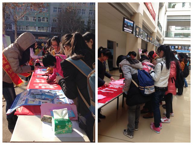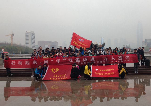 11月30日,山东女子学院青年志愿者协会携手齐鲁工业大学青年志愿者联合会,共同参与“为艾走泉城”的大型公益活动。活动期间,志愿者们冒着风雨,向路人宣传艾滋病的相关知识,发放艾滋病预防宣传页和小册子。通过宣传单图册的发放,增强了人们的防艾的意识。12月1日,志愿者在校内开展“生命之树”“爱心接力”活动。绿色常在,生命长存。一个个小小的“果实”,传达了同学们对于艾滋病患者抵御艾滋的支持和鼓励。