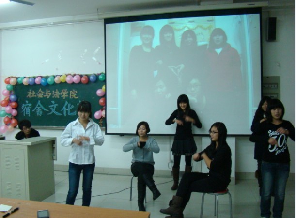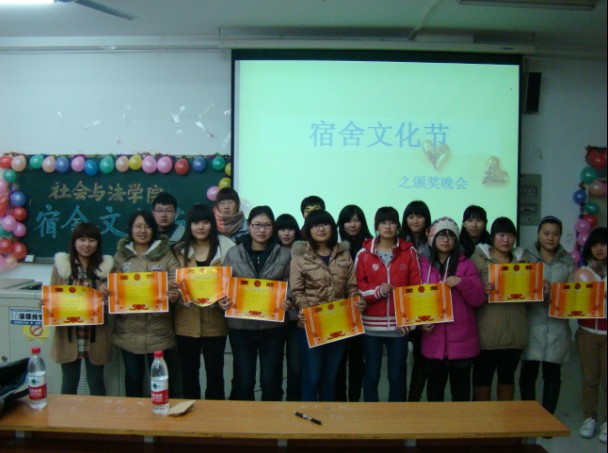 为丰富学生的课余生活,增进舍友之间的感情,社会与法学院于12月17日在合班楼308举行了“爱在屋檐下,文明悦大家”宿舍文化节总结暨颁奖晚会,学生会成员及各宿舍同学参加了活动。