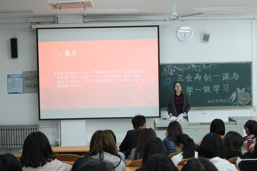 4月5号晚,社会与法学院团总支在博文楼110成功举办了“三会两制一课与一学一做学习”活动。在校各班团支书、组织委员、宣传委员及学生团总支全体成员参加了此次活动。