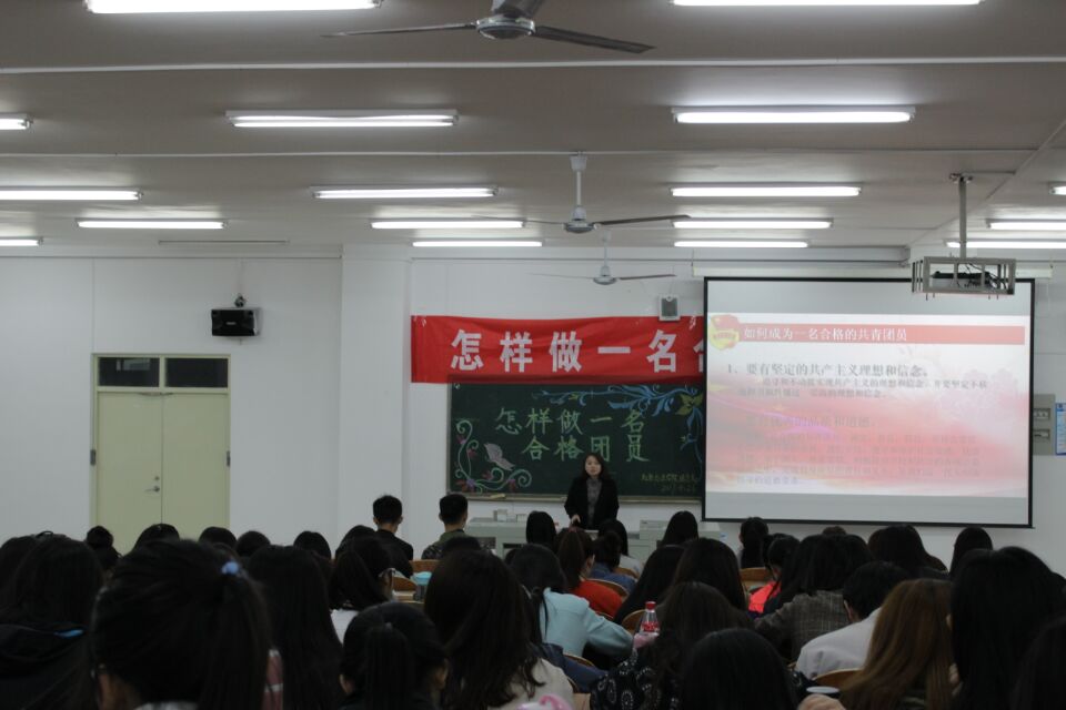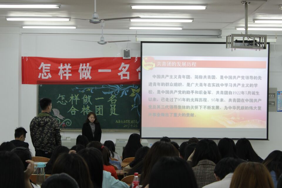 4月26日晚,社会与法学院在博学楼208举办以“怎样做一名优秀团员”为主题的团课活动。15级全体在校学生参加了此次活动。