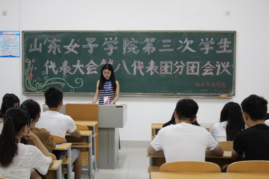 5月16日晚,社会与法学院在博学楼111成功举办山东女子学院第三次学生代表大会(以下简称“学代会”)第八代表团第一次分团会议。本次会议由第八代表团团长学生会主席李阳主持、第八代表团所有代表到场参加。