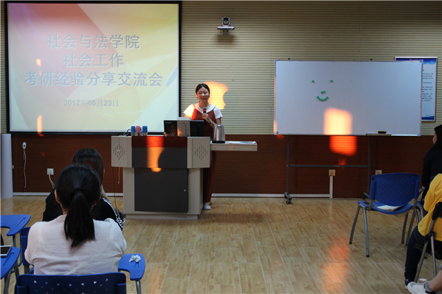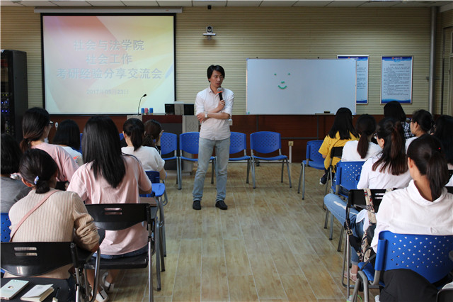 5月23日晚,社会与法学院在求实楼504召开社会工作专业考研经验分享交流会。赵记辉老师、13级社会工作成功考研学生代表以及14级社会工作本科专业学生参加了此次分享会。