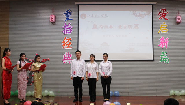6月3日晚,由社会与法学院承办的“重拾经典,爱启新篇”诗词达人知识竞赛在图书馆C座一楼报告厅顺利开展。此次比赛面向山东女子学院全体师生,由社会与法学院学生会主席团担任评委。