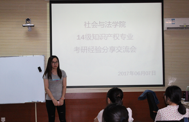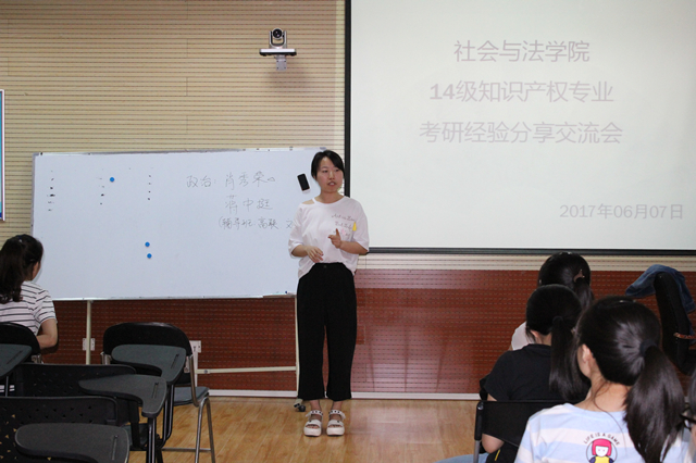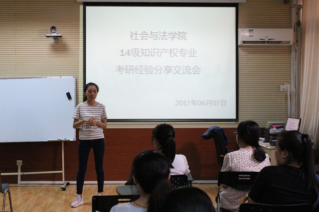 6月7日晚,社会与法学院在求实楼613教室举办知识产权专业考研经验交流分享会。14级知识产权学生参加了此次考研经验交流会。