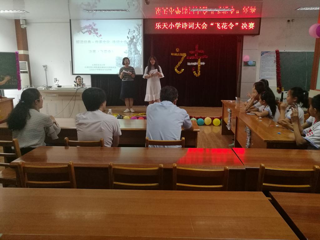6月9日下午,社会与法学院在乐天小学举办诗词大会系列活动之决赛(飞花令)。社会与法学院社会工作实习学生组织了本次比赛,同时邀请乐天小学校长张庆跃、教务处主任李冬华以及山东女子学院社会工作科研所主任赵记辉作为本次比赛评委,并邀请乐天小学部分学生作为观众。