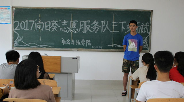 6月11日下午,社会与法学院在博学楼209教室举行了暑期“三下乡”社会实践面试活动,2016年“向日葵”志愿服务队队长及“向日葵”志愿服务队现有成员担任此次面试活动的评委。