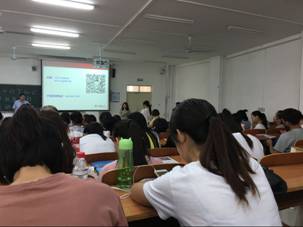 首先,专家给同学们讲述了知识产权的发展历史,并且然展示了一些熟悉的商标,用精彩的语言让同学们初步了解知识产权的作用。随后又以“滴滴打车”为例,让听众知道知识产权就在我们大家身边,并发挥着重要的作用。专家老师接着又讲述了商标的分类,给大家深刻剖析了“滴滴打车”商标侵权案件。其中又穿插着睿驰VS小桔的案件,让大家懂得什么叫做商标的近似。随后讲述讲述了中外商标的保护,总结了互联网+时代知识产权业务发展的实务特点和趋势。最后,专家提到当前经济环境下,企业品牌工作面临的问题和对策,同时给同学们以后的发展提供了建议。