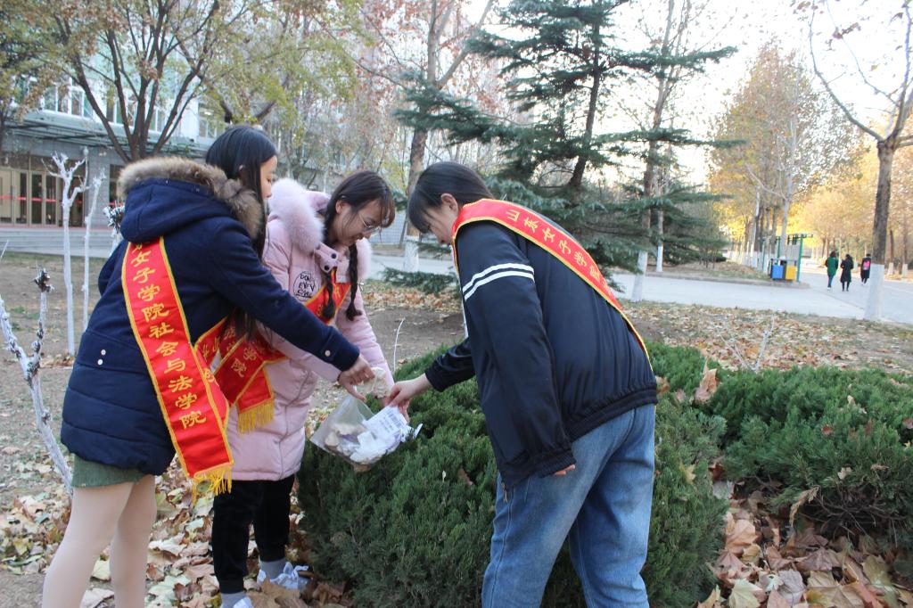 2017年11月26日下午,为进一步贯彻落实党的十九大精神,增强自身思想道德修养。社会与法学院校级团校成员于博文楼与博学楼间开展了志愿服务活动,此次志愿服务活动主要活动内容为擦拭宣传栏与打扫校园卫生。