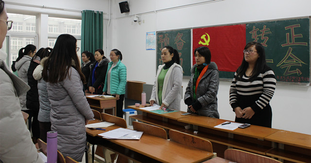 大会伊始,学生预备党员李慧、吴舒君依次宣读了预备党员转正申请书,详细地汇报了个人在工作、思想、学习上表现,同时表明了自己加入中国共产党的决心。随后,入党培养人分别对学生预备党员在预备期间的表现做了简单的总结。学生党支部成员对两位学生预备党员的表现情况进行了讨论,并通过无记名投票的方式进行表决,一致同意吸收李慧、吴舒君两名学生预备党员正式转为中共党员。在大会接近尾声之际,学生党支部教师向两名正式党员提出了要求,希望两名正式党员能够不断提高党性修养,不断学习党的理论知识,努力成为一名优秀的共产党员,并在思想上、行动上和各级党组织保持高度一致,切实发挥党员的模范先锋作用。