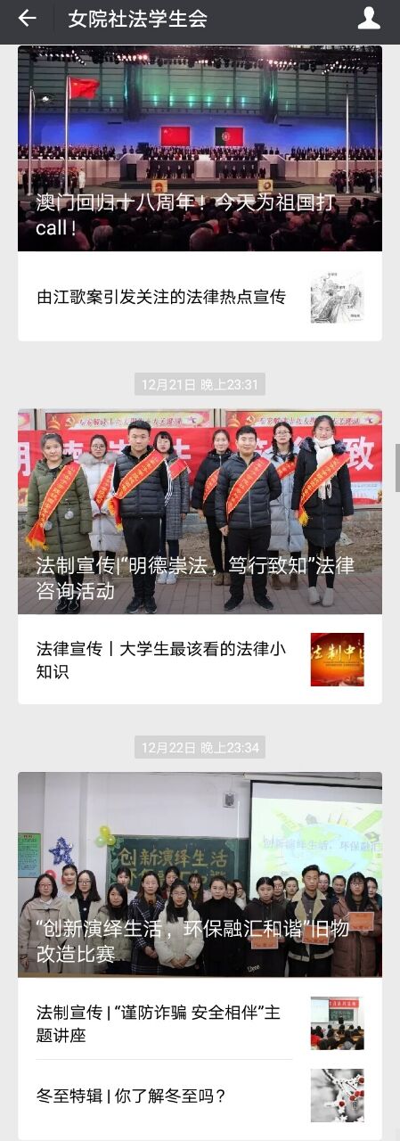 本次活动依托现代传媒技术,利用学生所喜闻乐见的方式,在学校广播站和微信平台上开展了多种形式的宣传活动。学校广播站自宪法日起连续三天宣读了有关宣扬宪法精神的稿子,在潜移默化中加深全校学生对宪法精神的认识和理解。同时,学院连续六天在微信平台上进行了“一条法律小知识、一个身边法律小案例、一次生活法律小提醒”的推送活动,通过简单易懂的小知识、小案例,将法律教育深入到学生们的日常生活中。活动过程中,学生们反响热烈,对学习宪法精神表现出了高度的热情。