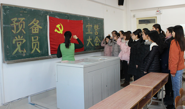 2018年1月11日下午,社会与法学院学生党支部在博学楼410教室召开了预备党员宣誓大会,两名学生党支部教师、5名正式党员和14名预备党员参加了此次宣誓大会。