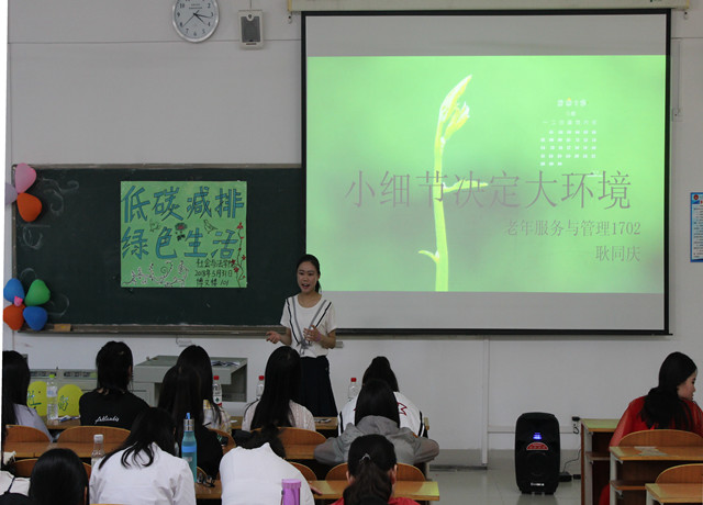 2018年5月31日下午,社会与法学院在博文楼101教室举办了以“低碳减排,绿色生活”为主题的演讲比赛,社会与法学院2017级全体学生参加了此次活动。