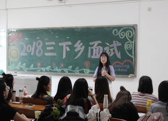 2018年6月14日下午,社会与法学院在博学楼404教室举办了暑期“三下乡”社会实践面试活动,社会与法学院学生会与团总支主席团、部分部长及2017级部分学生参加了此次面试活动。