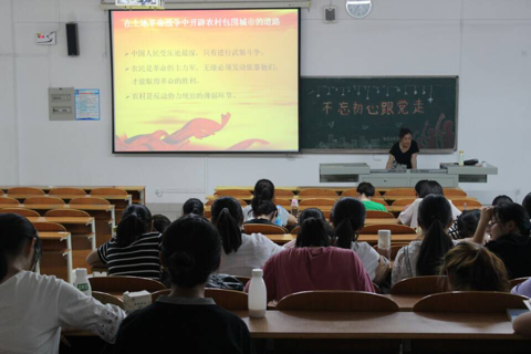 为帮助同学们深入领会党的十九大报告精神,6月22日,社会与法学院在博学楼103教室举办了“不忘初心跟党走”主题讲座。本次讲座邀请了祝国红教授为主讲人,17级学生代表参加了本次讲座。