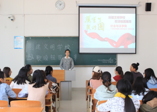 新时代,新征程,新篇章,歌唱祖国共筑中国梦。为了贯彻落实十九大精神、促进我校创建文明学校,社会与法学院17、18级各团支部于10月11日开展“创建文明学校,歌颂祖国篇章”主题团日活动。同学们用热情点燃了热爱祖国的激情。