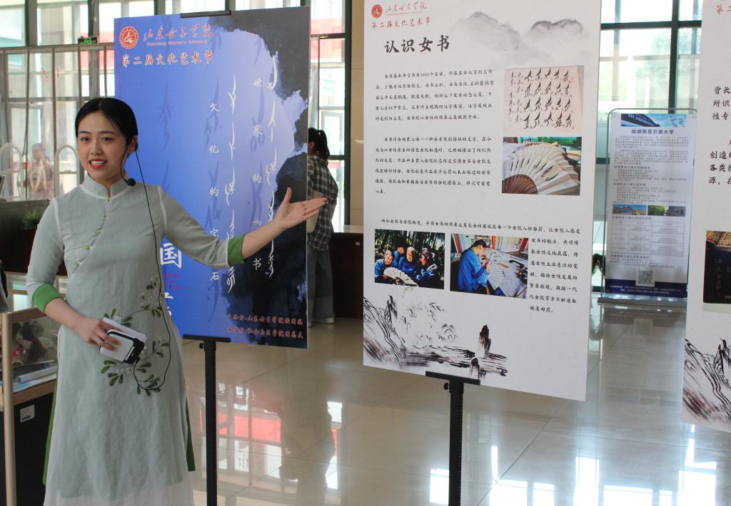 2019年5月11日上午,山东女子学院在图书馆A座大厅举办第二届文化艺术节开幕式,社会与法学院以“世界的女书,文化的宝石”江永女书展览活动参与了此次开幕仪式。