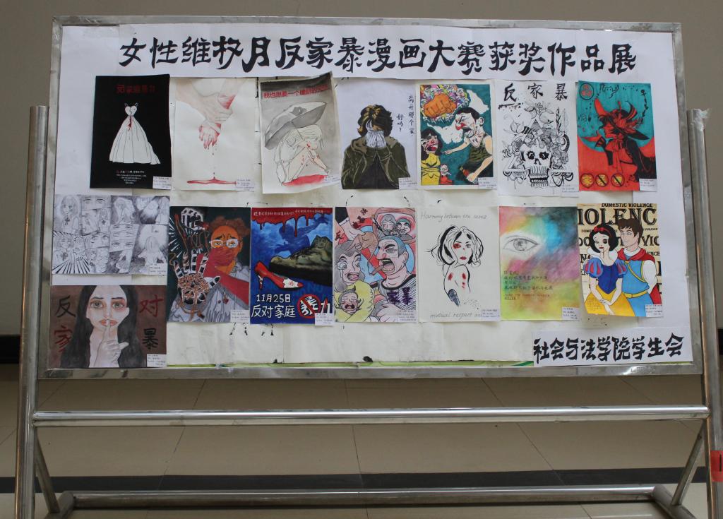 为了预防和制止家庭暴力,宣传《山东省反家庭暴力条例》,社会与法学院于3月25日起在博文楼大厅开展了为期一周的“拒绝家庭暴力,构建和谐女院”主题漫画展览活动,吸引学生们驻足观赏。