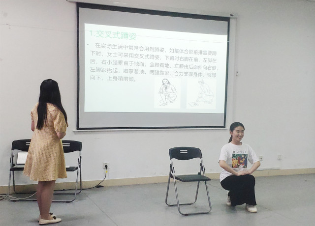 2019年5月29日晚,社会与法学院在图书馆B座303教室举办了礼仪培训活动。此次活动邀请了旅游学院空乘专业学生进行讲解,社会与法学院部分学生干部参加。
