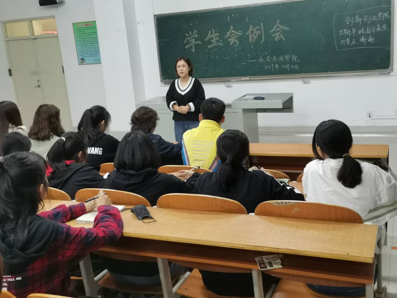 2019年10月10日中午,社会与法学院学生会于博文楼108教室举行了第十二届学生会第一次例会。此次会议由社会与法学院方莹老师主持、学生会主席团及第十二届学生会新成员们出席。