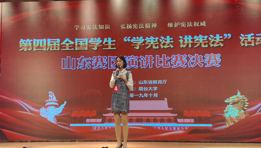 2019年10月13日至14日,由山东省教育厅主办、曲阜师范大学和烟台大学承办的山东省第四届“学宪法 讲宪法”活动分别在日照和烟台举行,社会与法学院知识产权专业潘美竹同学、法律事务专业许友谊同学参加比赛,并分别荣获三等奖。
