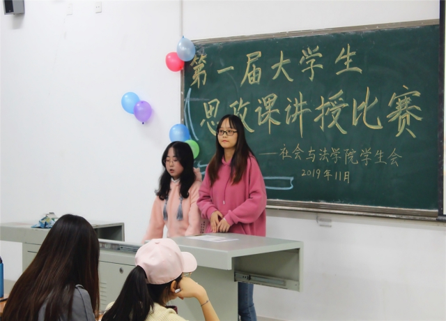 2019年11月12日,社会与法学院于博文楼101教室举行了以“坤德耀女院,共创中国梦”为主题的第一届大学生思政课讲授比赛。此次比赛由团总支学生会主办,共组织全院十一支团队参赛。