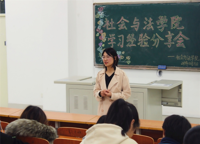 2019年11月18日晚,社会与法学院分别在博文楼210、208教室开展了学习经验分享会,分享会由2019年国家奖学金获得者张治琦、省政府奖学金获得者刘美一主讲,社会与法学院18级、19级本专科学生200余人参加了此次分享会。