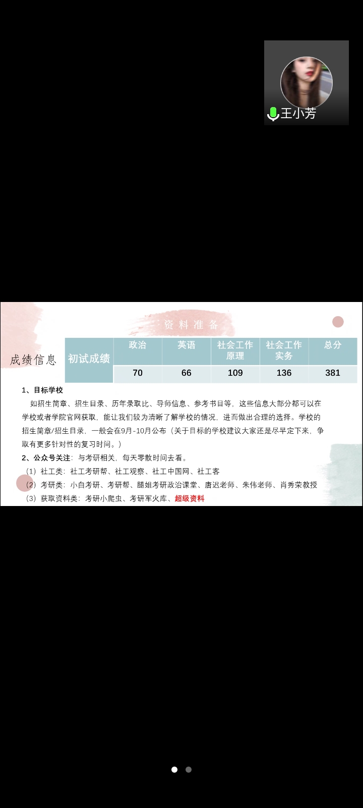 2020年4月28日晚,社会与法学院于腾讯会议举办了线上考研经验分享会。此次活动邀请了2016级考研优秀学生代表分享经验,2017级、2018级、2019级社会工作专业全体学生参加了此次活动。