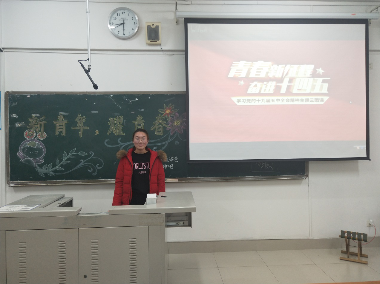 活动伊始,2020级社会工作专业团支书娄静雯主持召开了以“新青年,耀青春”主题班会,为学生们解读了共青团的特性的主要表现和根本任务,帮助学生们了解了共青团员的义务与责任。紧接着,2020级社会工作班干部们提出了本学期学生们存在的问题,激励学生们争创优秀班级的坚定决心与魄力。随后,全体学生观看了党的十九届五中全会精神主题云团课,深入贯彻落实十三五以来中国的成就以及十四五的社会发展规划。最后,团支书娄静雯对于本次活动做了总结。学生们认真倾听现场氛围良好。
