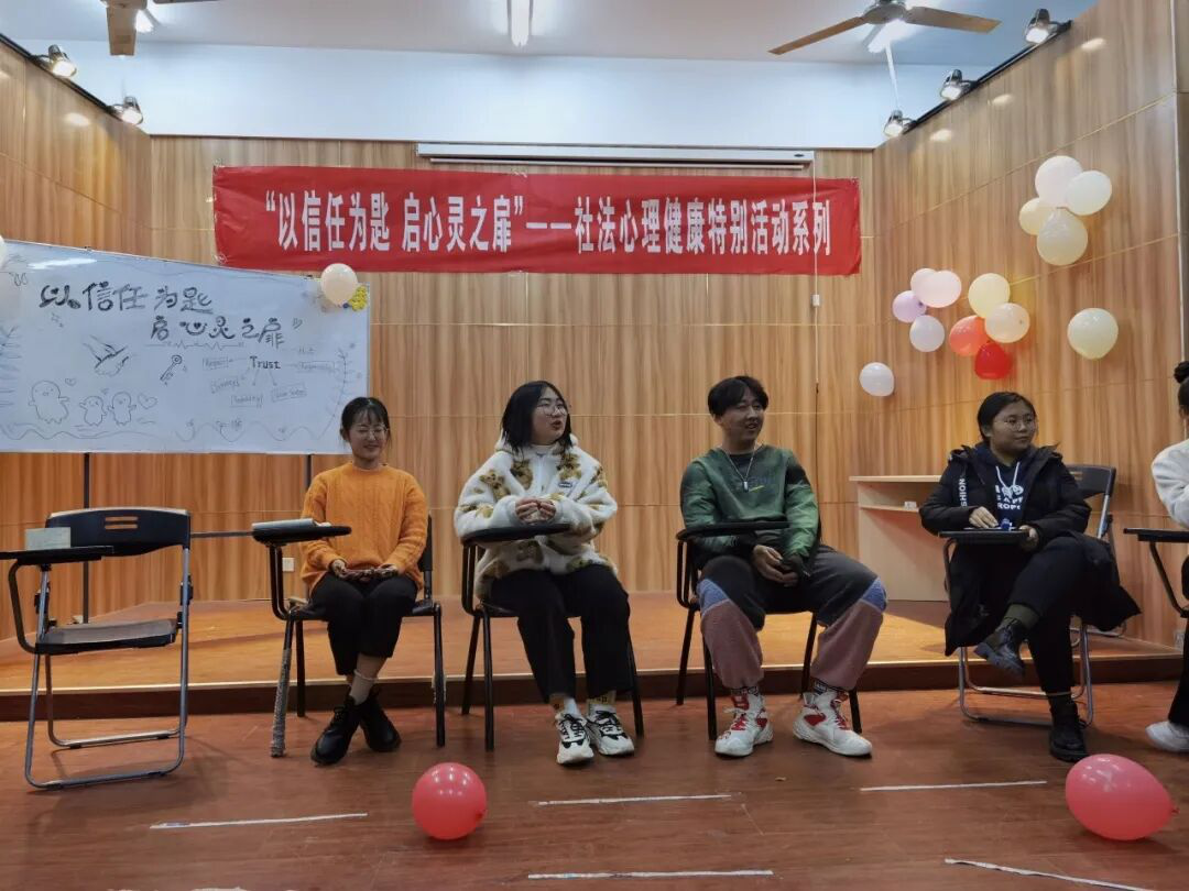2020年11月29日晚,社会与法学院于求实楼613教室开展了“以信任为匙,启心灵之扉”心理健康活动系列第二期。此次活动由社会与法学院心理生活部主持,部分学生代表参加。