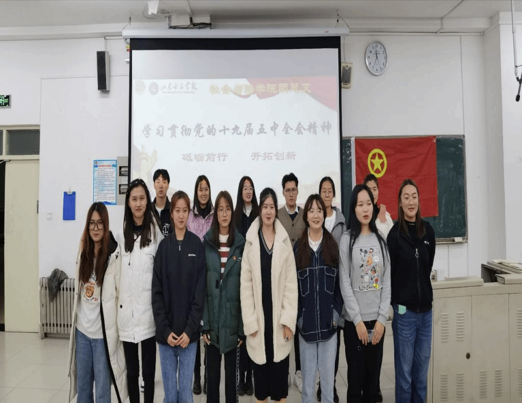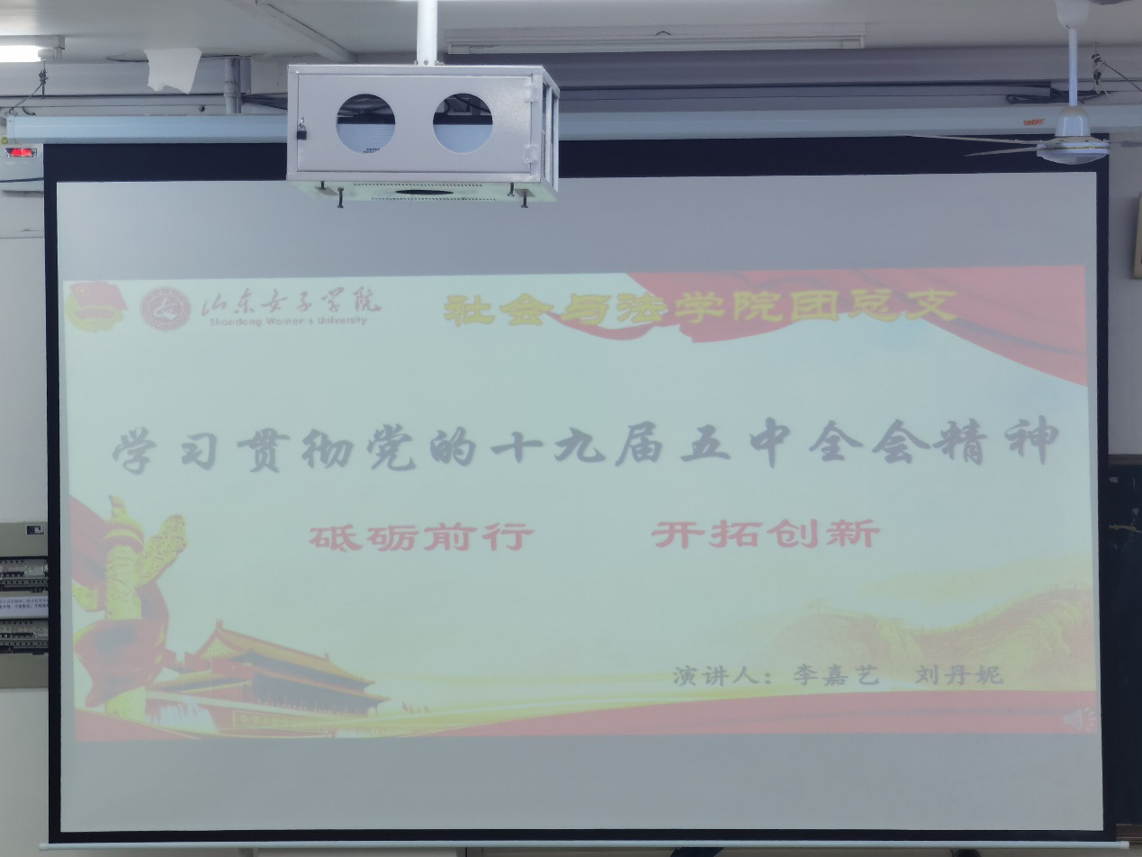 2020年11月19日晚上,社会与法学院团总支于博文楼210教室举办了“学习贯彻党的十九届五中全会精神”主题团日活动。此次活动由团支书李嘉艺及刘丹妮主持,2019级和2020级部分团员参加。