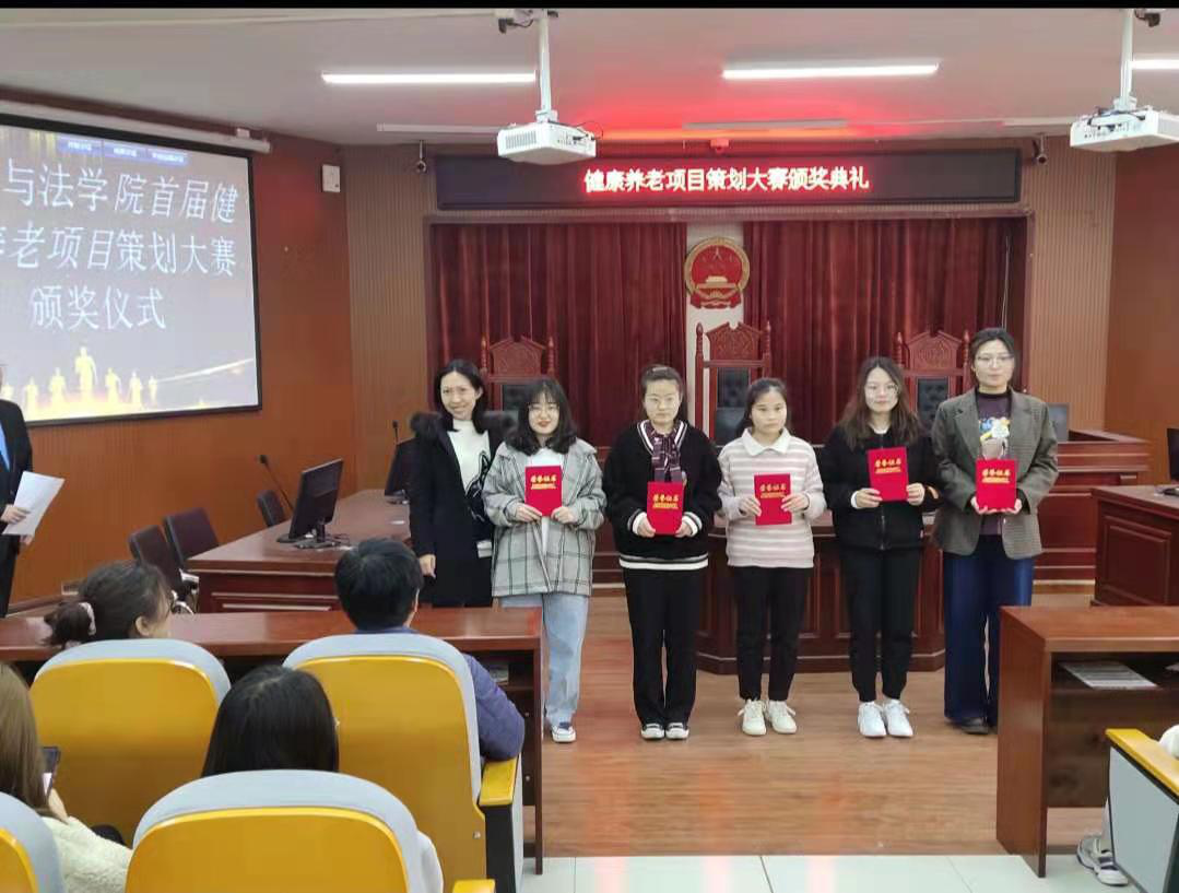 2021年3月18日下午,社会与法学院于博文楼110教室举办了健康养老项目策划大赛颁奖典礼活动。此次活动由蔡沁纹、刘朝阳主持,党总支书记杨洋、团总支书记张扬、陈姝君老师、祝国红老师、辅导员霍建强、辅导员王晴晴及获奖团队参加。