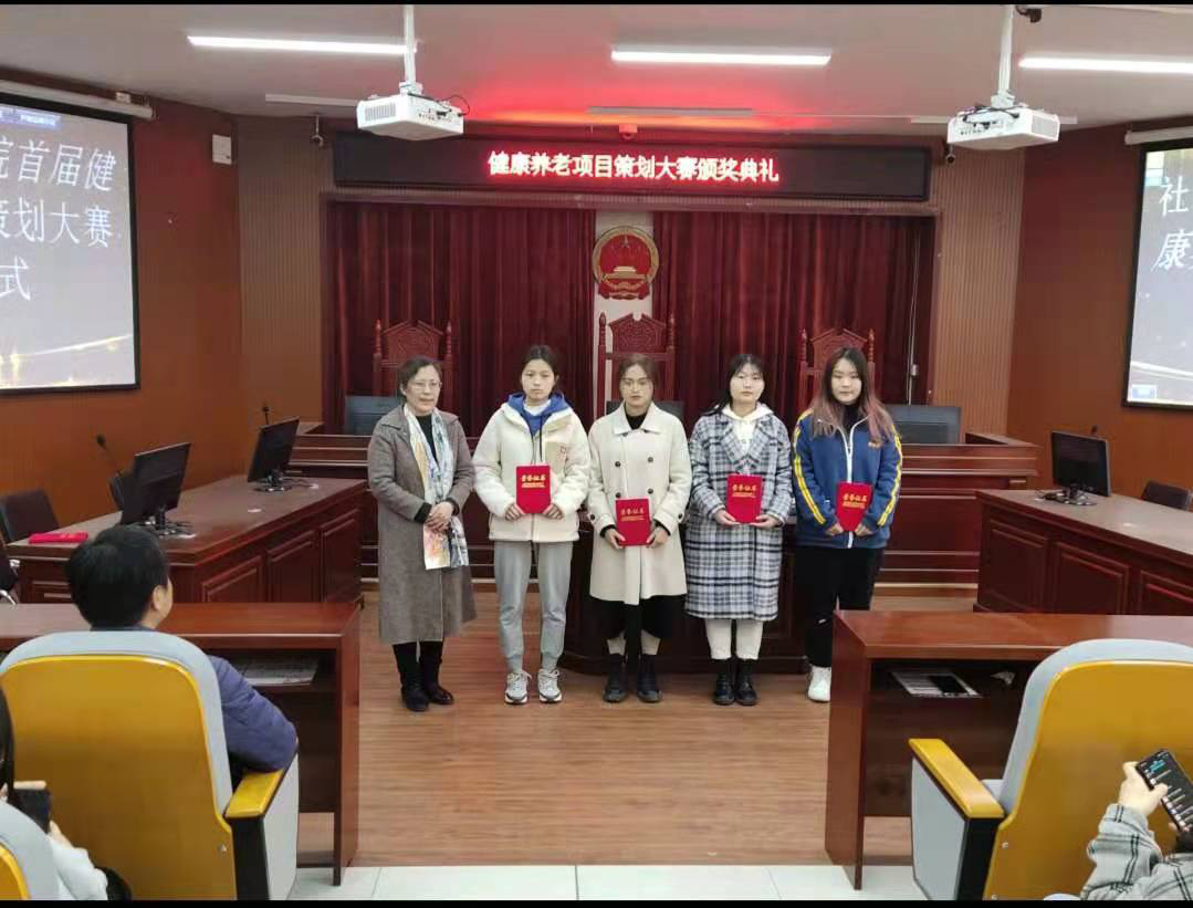 活动伊始,主持人介绍了举办此次健康养老项目策划大赛的社会背景并宣布了获得一等奖、二等奖、三等奖的团队名单。紧接着,党总支书记杨洋、祝国红老师、陈姝君老师分别为获得一等奖、二等奖、三等奖的团队颁发荣誉证书并合影留念。随后,由随迁老人社区适应关怀计划项目的项目负责人李冰琦、社区老年人慢性病自我管理项目负责人张寒、关爱空巢老人项目负责人马得粮分别进行了ppt的展示,主要介绍了项目背景、选题依据、实施对象、目标及项目预期效果。最后,由陈姝君老师进行了总结,提出了举办此次大赛是为了彰显我校一老一小特色的初衷,并希望学生们能够积极参加接下来的养老服务技能大赛。此次活动现场氛围融洽,学生们受益匪浅。