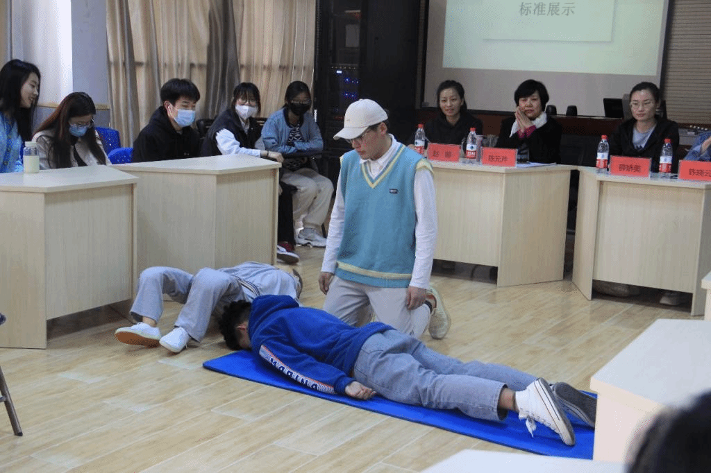 本次决赛入围的选手共有12名,决赛的操作项目是心肺复苏。决赛中,邀请了校后勤处陈元芹老师,健康服务与管理教研室主任赵娜老师,养老服务与管理的专业老师陈晓云老师和薛娇美老师作为本次比赛的评委,还征集了30位同学作为本次比赛的观众,比赛的现场热闹非凡。比赛过程中,12位决赛选手分别进行了心肺复苏的操作,观众们也认真观看每一位选手的操作,现场传来阵阵掌声。此外,比赛后期,健康管理俱乐部的成员为大家展示了标准的心肺复苏操作流程并进行分步讲解,真正把心肺复苏这项急救技能落实到实处。
