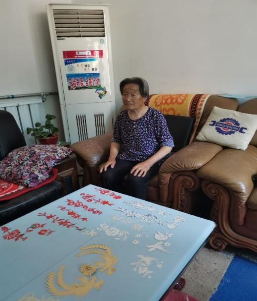 首先了解到是距今已经有几千年的历史的剪纸艺术。剪纸经历了唐宋明清时代的发展,逐渐走向成熟。新中国成立后,在“百花齐放,推陈出新”的背景下,剪纸创作的内容和形式越来越丰富。今天有幸采访到了藕池村的剪纸艺人孙思英,奶奶今年高龄81岁,但仍然精神焕发,随后奶奶找出了她之前珍藏的剪纸,非常之多,令志愿者们大开眼界。奶奶的手指因疾患而疼痛,所以就没有为大家现场展示剪纸,有一丝丝的遗憾。志愿者们仔细的检查了孙奶奶的双手,并就她的情况讲解了锻炼、保健、治疗的方法及日常注意事项。
