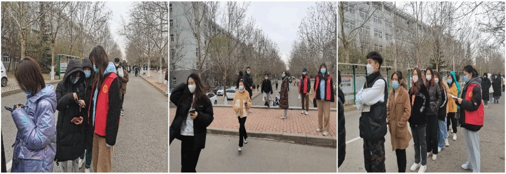 在山东女子学院核酸检测采样点,只见一个个青年志愿者与医护人员配合默契,整个检测过程秩序井然,高效顺畅;负责疫情摸排的志愿者们协助同学们进行检测前的信息登记,耐心解答着同学们提出的各种问题;负责纪律组织的志愿者们则在现场维持秩序,做好引导,使大家保持“一米线”的安全距离,有序排队检测;负责消毒消杀的志愿者们,深入疫情防控隔离宿舍,为宿舍内的物品进行彻底的消毒,筑牢安全防线。