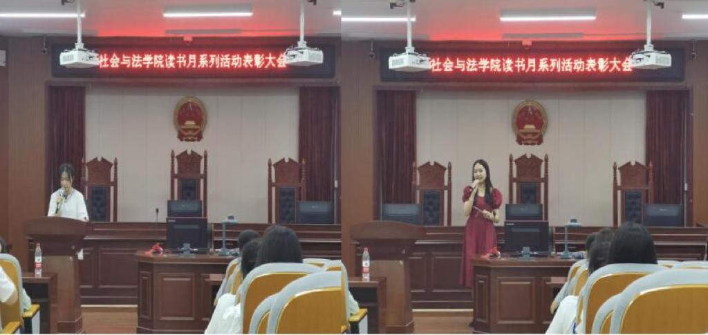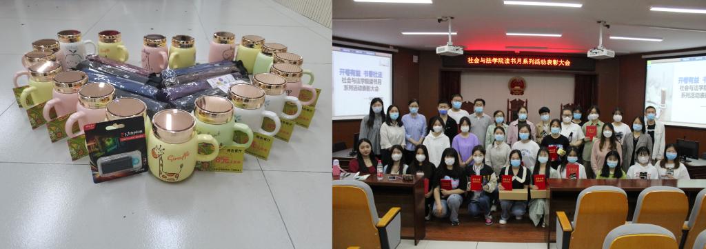 疫情难阻书香,阅读润泽心田。为迎接第27个“世界读书日”到来,社会与法学院自3月22日起面向全院学生开展“开卷有益,书香社法”读书月系列活动,于4月23日下午召开表彰大会。学校图书馆馆长李霞,学生处副处长赵丽丽,校团委副书记翟斐,社会与法学院党委书记杨洋、副书记吴玉霞,辅导员王晴晴、韦钦昊及部分获奖学生代表参加表彰大会。