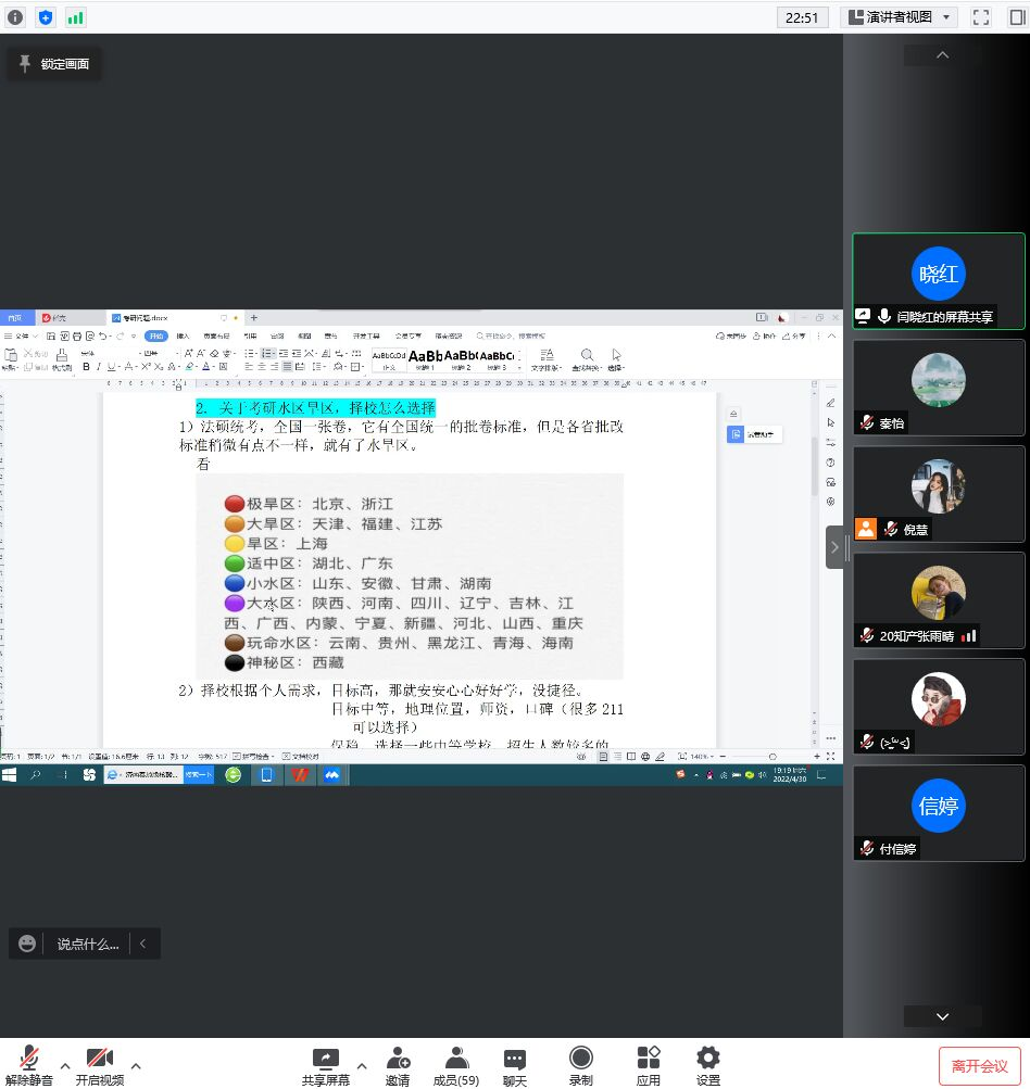 为了进一步加强同学们对研究生入学考试的认识,明确考研目标,增强考研信心,全方位、多层次,宽领域了解考研相关信息,系统规范筹备研究生考试,4月30日晚七点,知识产权专业举办线上考研经验分享会,邀请2022届成功上岸的部分师姐分享考研经验。