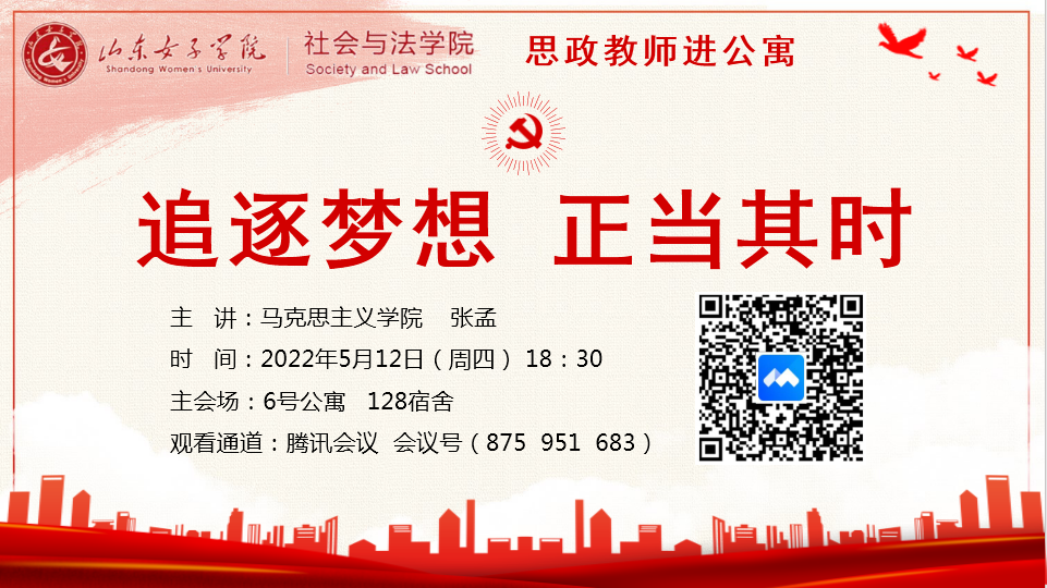 为更好地落实立德树人根本任务,进一步推进大学生思想政治教育进公寓,在习近平总书记出席庆祝中国共产主义青年团成立100周年大会并发表重要讲话之际,5月12日晚,学生工作部(处)、社会与法学院联合马克思主义学院在6号公寓为青年学生讲思政课,6号公寓楼长社会与法学院党委副书记吴玉霞、各层层长老师到学生宿舍共同学习,本次思政课堂“云上”举行。