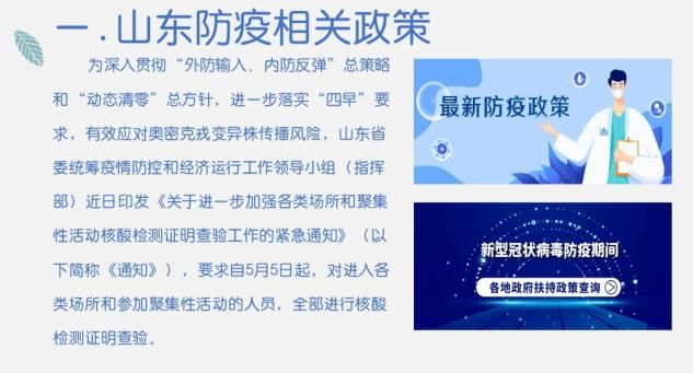 活动伊始,主讲人从山东防疫相关政策展开讲解,引导同学们了解山东省最新防疫政策,为加强理解,讲座中穿插了有关“中国防疫政策改革”的小视频,并对各地疫情防控政策措施进行了比较。会议中,主讲人还着重讲述疫情期间的心理健康维护措施,依次从睡眠、饮食、运动、作息、沟通交流这五个方面入手,聚焦人们疫情期间最需要注意的问题。同时主讲人向同学们提供了几个疫情防控时期如何保持心理健康的小Tips,引导大家在疫情期间学会掌握合理方法,保持心理健康。最后,主讲人向同学们讲解了新冠后遗症、新冠后遗症的类型以及最新研究成果,让同学们对新冠后遗症有了更加深入且清晰的了解。