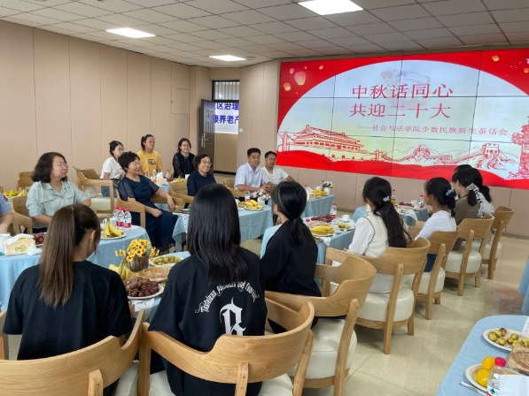 为迎接党的二十大召开,在中秋佳节和第38个教师节来临之际,社会与法学院于9月8日下午举办“中秋话同心,共迎二十大”少数民族新生茶话会,学校党委书记郭翠芬、统战部部长李君到会与社会与法学院少数民族新生代表欢聚一堂,话家乡特色、民族文化,谈专业选择、生活感受。