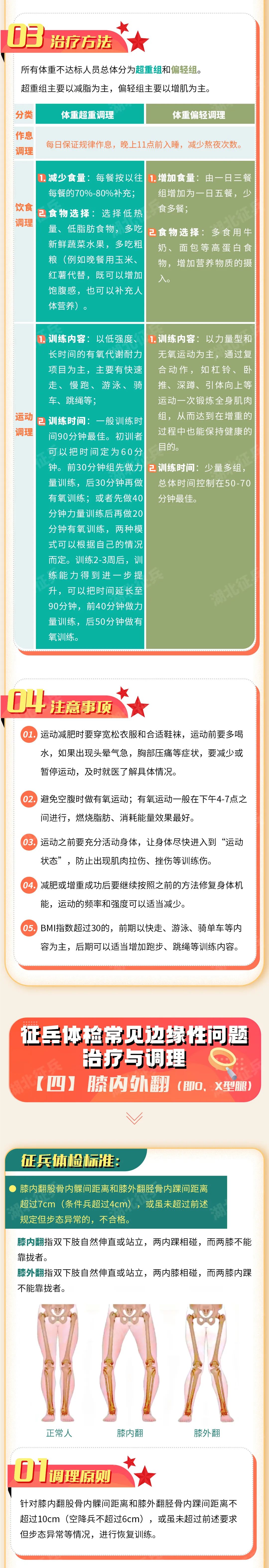 为帮助应征青年科学调理身体边缘性问题,更快修复身体机能,我们在已有实践的基础上,对部分常见征兵体检边缘性问题的治疗与调理统一进行了归纳整理,旨在帮助更多应征入伍意愿强烈的应征青年顺利通过征兵体检(有关内容不涉及诱导医疗,部分项目也需要在专业人员指导下进行)。