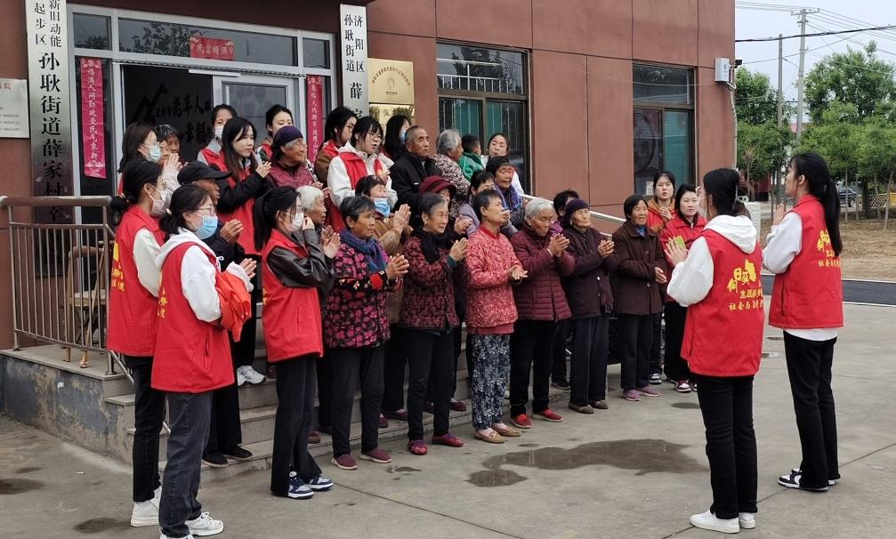 为进一步贯彻落实习近平新时代中国特色社会主义思想,探索农村养老服务新机制、新模式,打造特色农村养老志愿服务品牌,2023年4月22日由社会与法学院党委书记杨洋和专任老师栾晓、牛啸尘带队再次来到孙耿街道薛家村幸福院,开展“齐健身,耆健康—老少携手,耆趣无穷”志愿服务活动。