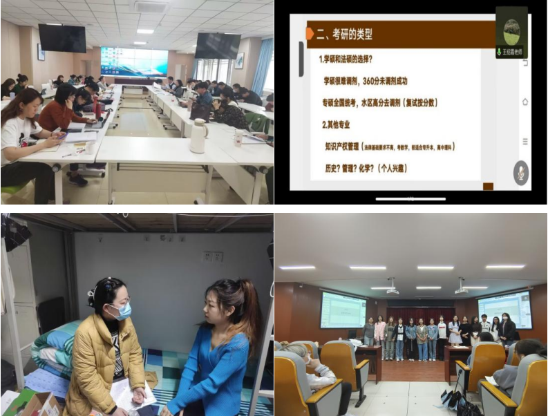 学院领导、教研室主任、班主任、学业导师、辅导员齐抓共管,形成“五方联动”工作机制,共同促进学院考研工作。学院领导高度重视,统筹推进;各教研室主任全面负责,对学生实习、教学、毕业论文等进行科学安排、周密部署;班主任加强班风学风建设,积极引导学生考研,通过主题班会等形式营造浓厚学习氛围;学业导师引导学生做好学业规划,介绍相关考研信息和资源,在报考过程中帮助学生科学分析考研形势,指导报考相关院校和专业;辅导员对考研学生给予足够的关注和支持,帮助缓解学生考研压力,做好学生思想工作。
