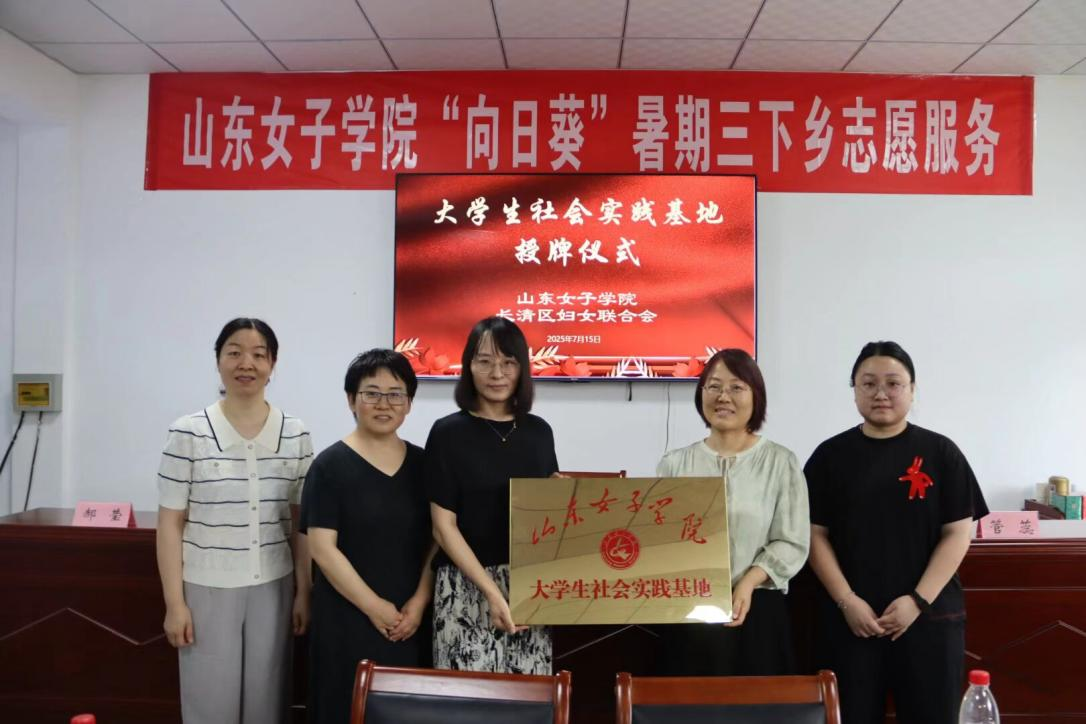 大学生社会实践基地揭牌仪式在长清区妇女儿童服务中心顺利举行。山东女子学院社会发展学院党委副书记吴玉霞、长清区妇联党组书记、主席韩玉晶及相关负责人参与此次仪式。韩玉晶表示,基地将为志愿服务提供稳定平台,让更多儿童感受关爱、妇女收获温暖;社会发展学院承诺将以专业与热情投入活动,用实际行动践行社会责任。简短而庄重的仪式后,现场响起热烈掌声,为当日后续活动拉开了充满意义的序幕。